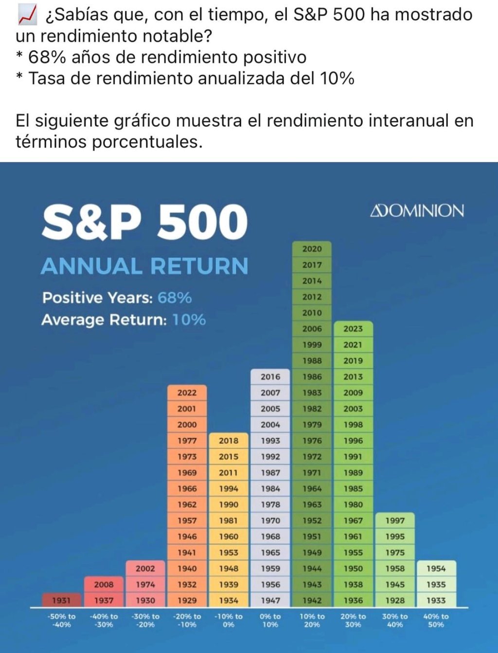 Más allá de los números, lo que realmente destaca es la consistencia del índice. Según datos históricos, el 68% de los años han sido positivos, incluso cuando la economía global ha atravesado crisis significativas como burbujas financieras, recesiones y pandemias. Este dato refuerza la importancia de no dejarse llevar por el ruido del corto plazo y mantener el enfoque en el largo plazo.